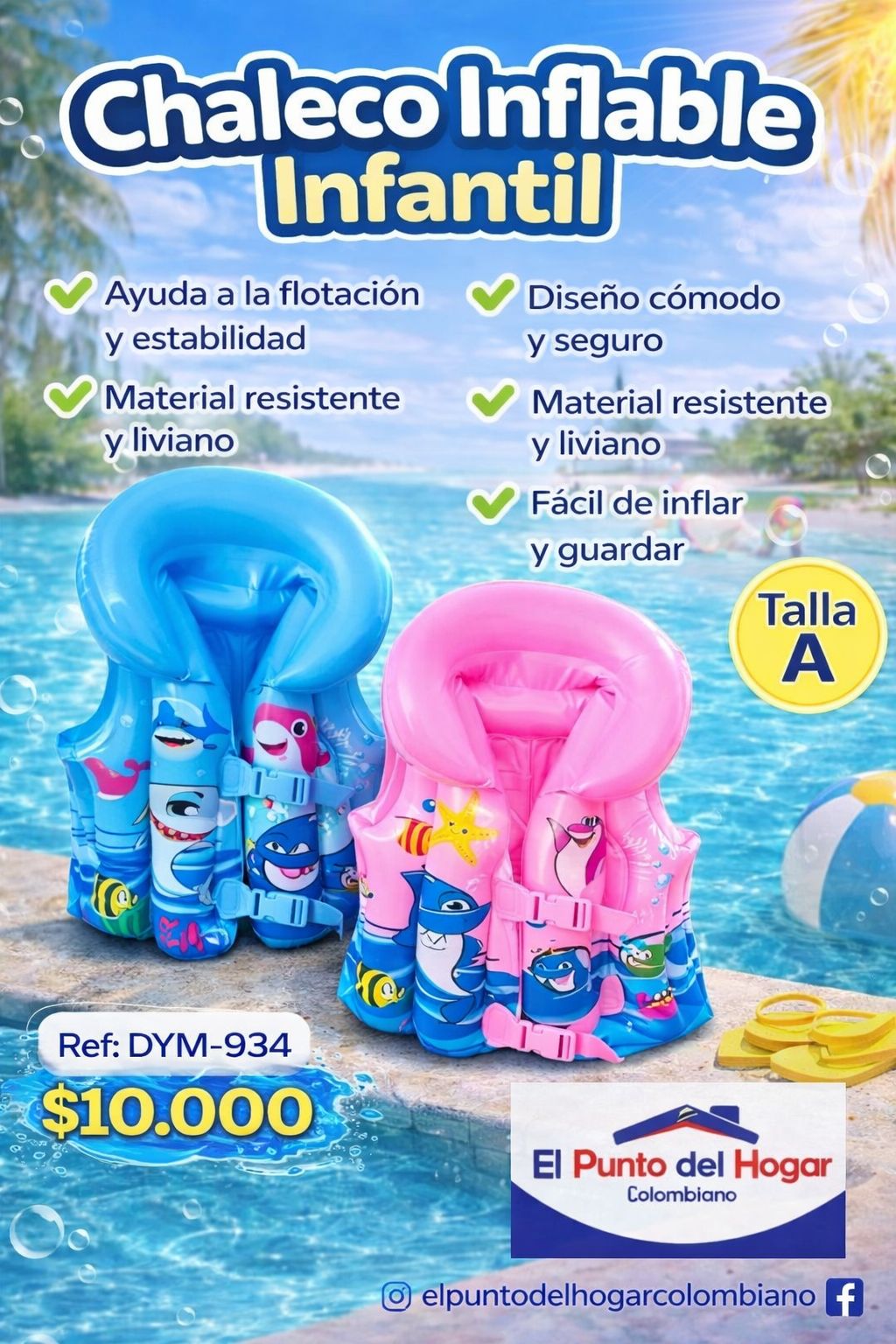 Chaleco inflable infantil con diseños divertidos y coloridos, perfecto para acompañar sus primeros momentos en piscina o playa con supervisión. 🏖️☀️