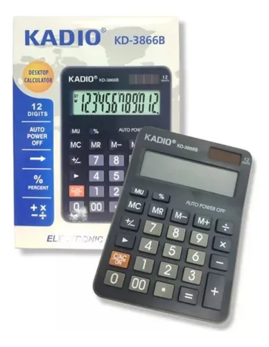 Realiza cálculos fácilmente con la calculadora Kadio 3866. Su pantalla amplia y teclas grandes aseguran comodidad en el uso. Perfecta para contabilidad, oficina o uso escolar.