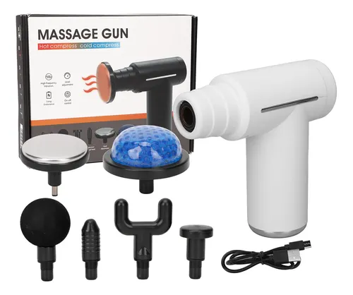 Pistola de masaje con funciones de frío y calor, alivia tensión muscular y mejora la recuperación física.