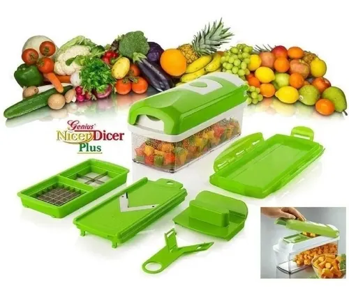 Nicer Dicer Genius 10 en 1, versátil y seguro, facilita cortar, picar y rebanar frutas y verduras de forma rápida y uniforme. Ideal para cocina casera.