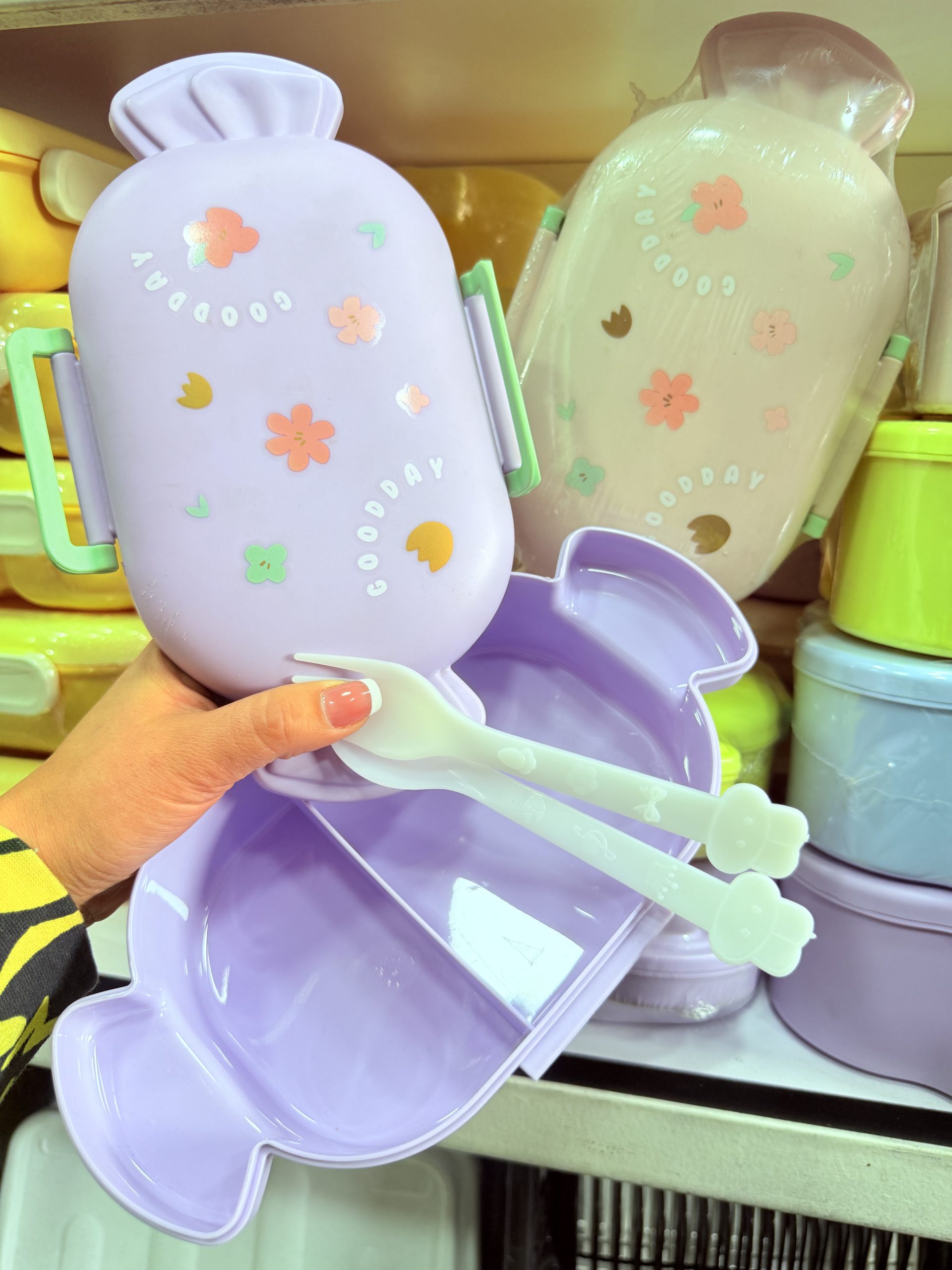 Porta comida plástico 2 divisiones , 2 juegos de cubiertos , 3 colores disponibles , 2 cucharas