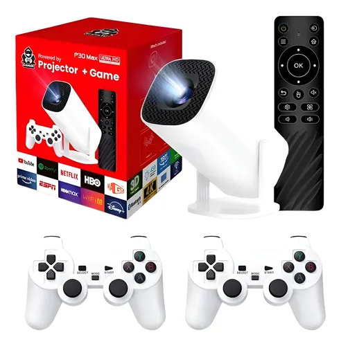 Proyector H300 Max con juegos y controles, entretenimiento todo en uno.