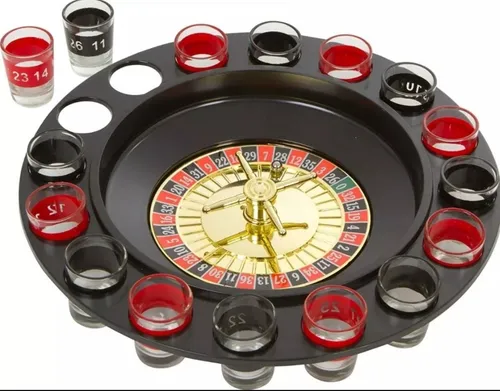 Juego de ruleta con vasos de shots, divertido para reuniones y fiestas.