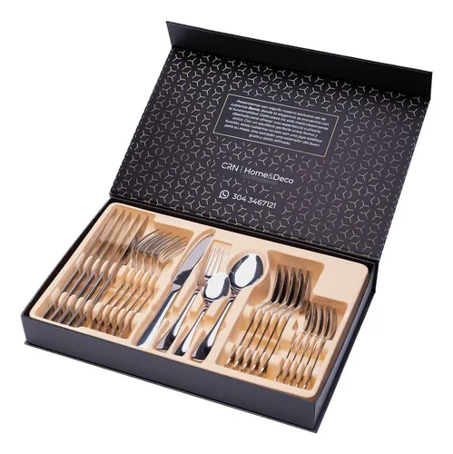Set de 24 cubiertos plateados, completo y elegante para todo tipo de mesa.
