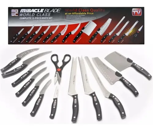 Juego de 13 cuchillos de cocina, incluye diferentes tipos para cortar, picar y rebanar. Material duradero y seguro para uso doméstico.